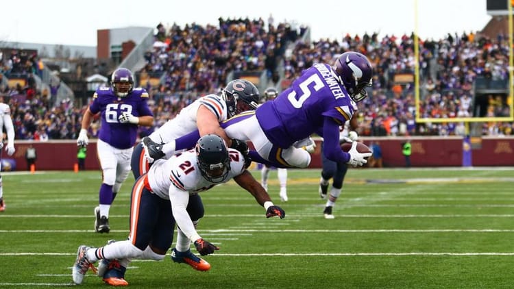 How great is it to see Chad Greenway playing some good football this year? The guy looks like he’s having fun out there and he is chipping in some valuable contributions on a weekly basis. Greenway ended Sunday’s game with five tackles, one for a loss, and a shirt-sleeve sack of Cutler. Oh, and don’t forget, use #GreenwayWPMOYChallenge on social media this month to cast your vote for Greenway as 2015’s Man of the Year winner, he deserves it.