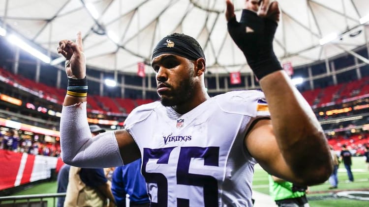 The Vikings won the turnover battle against Atlanta, a point of emphasis after the Green Bay loss, and a huge part of that were Anthony Barr’s two forced fumbles. The first came early in the game after Falcons running back Tevin Coleman sprinted for 46 yards, but Barr made the ultimate hustle play when he snuck up behind Coleman and punched the ball out to prevent points from going on the board. The second came late in the game, just prior to Peterson’s long touchdown run, when Barr stripped quarterback Matt Ryan on fourth down to effectively end Atlanta’s hopes of a comeback. Technically, Atlanta recovered that second fumble for themselves, but the turnover on downs was every bit as effective as a Vikings recovery. Even outside of those splash plays, Barr was just generally a roaming monster all afternoon, and he put together an eight tackle outing (one for a loss) and added a pass deflection to his stat line.