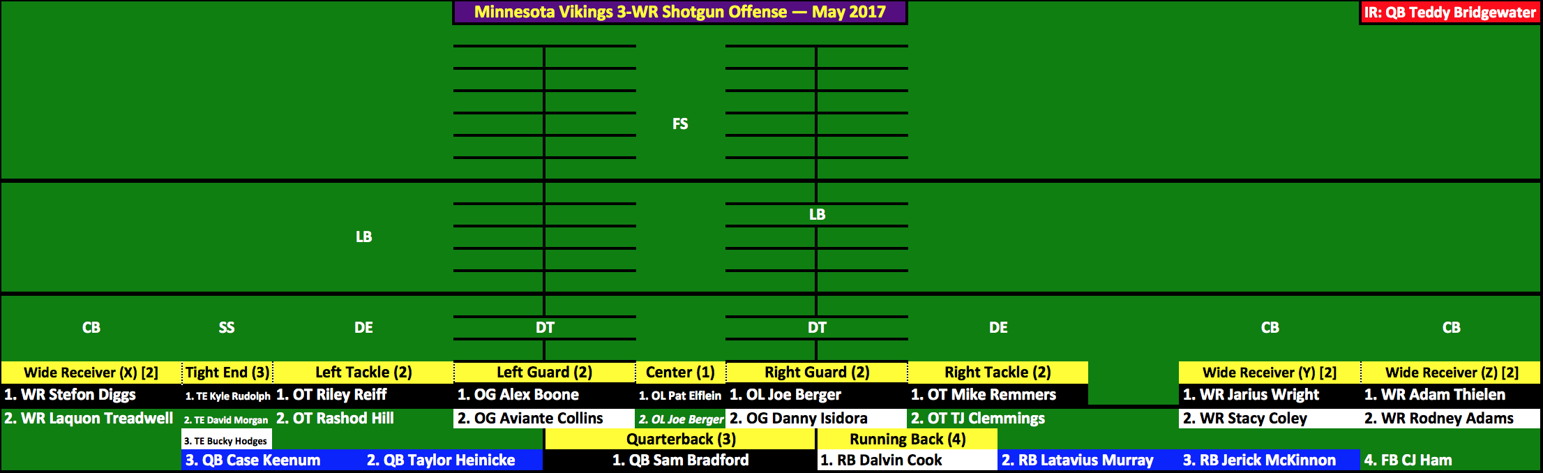 Quarterback (3): Sam Bradford — Taylor Heinicke — Case Keenum — Teddy Bridgewater (IR)