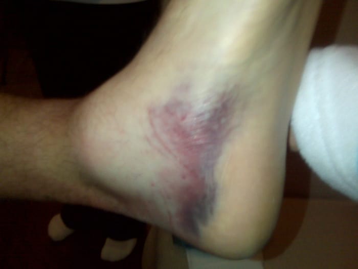 Brett Favre shows off his ankle months after the Saints cheated in the 2009 NFC Championship. Never forget.