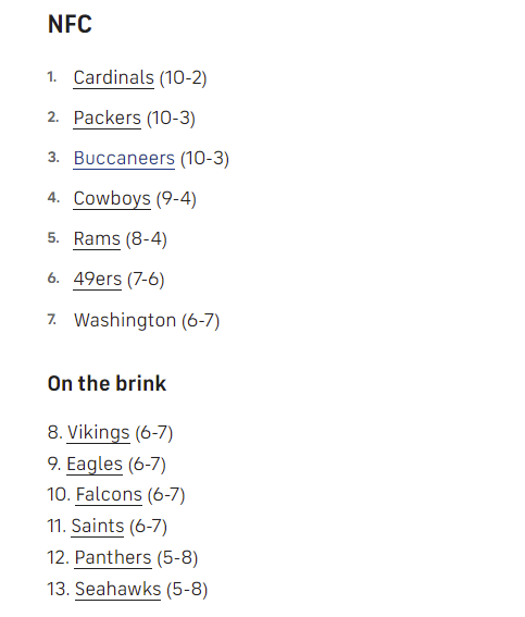 But based on the way the Eagles, Falcons, Saints, and Washington have performed so far in 2021, the Vikings, with a 3-1 showing the rest of the way, should be good enough to squirt in the playoffs with tiebreakers and such.