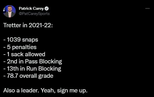 By the numbers, if proof is needed on Tretter’s supremacy, have a look per Pro Football Focus: