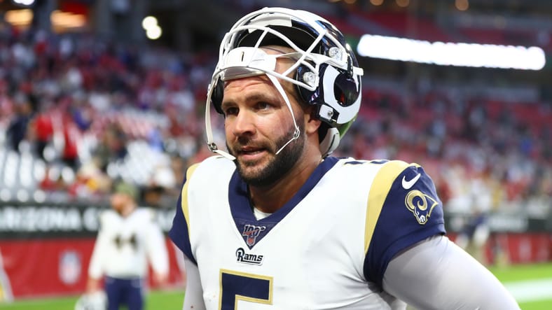 Dec 1, 2019; Glendale, AZ, USA; Los Angeles Rams quarterback Blake Bortles (5) against the Arizona Cardinals at State Farm Stadium. Mandatory Credit: Mark J. Rebilas-USA TODAY Sports