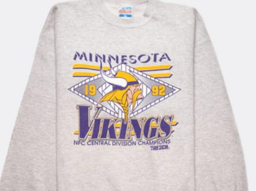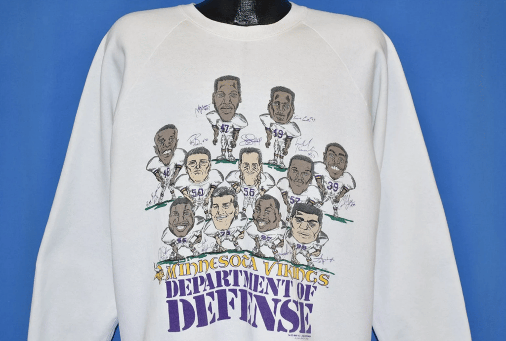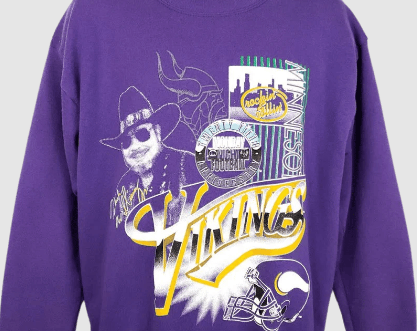 Well, if I’ve learned anything from my Tik Tok savvy wife, vintage is back in style and people are paying big bucks to bring back some of the fashion trends from the 80s and 90s. Maybe it’s the influence of media like Stranger Things, or maybe it’s the next generation coming into disposable income, but bright colors, acid washed denim and crew neck sweatshirts are back…so naturally it’s time to highlight the ____ best vintage Minnesota Vikings sweatshirts that need to be a part of this resurgence ASAP!