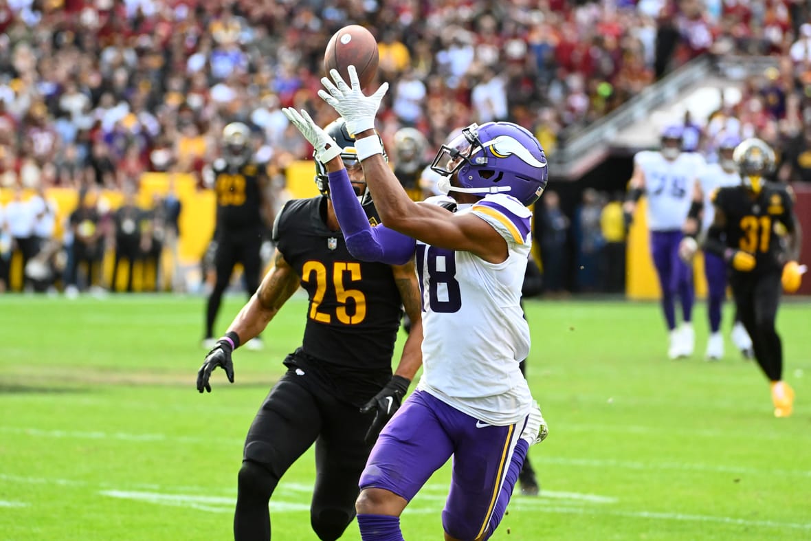 The Vikings climbed to 7-1 atop the NFC North after a suspenseful win over the Washington Commanders in Week 9. Minnesota downed Washington 20-17.