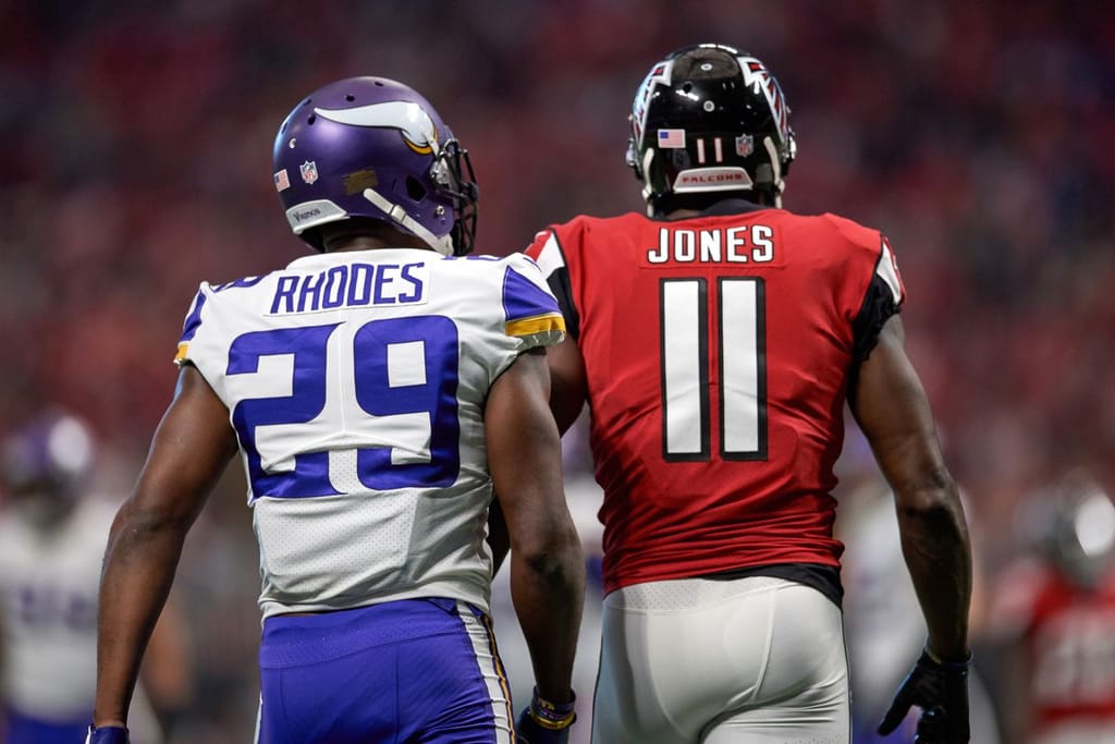 After his selection in the first round of the 2013 draft, Rhodes played his first seven seasons in the league with the Vikings. He was a dominant cornerback in his prime. In 2017, Rhodes was a member of the first-team All-Pro and received one vote for the Defensive Player of the Year award. He regularly shut down elite receivers like Julio Jones and Odell Beckham Jr.