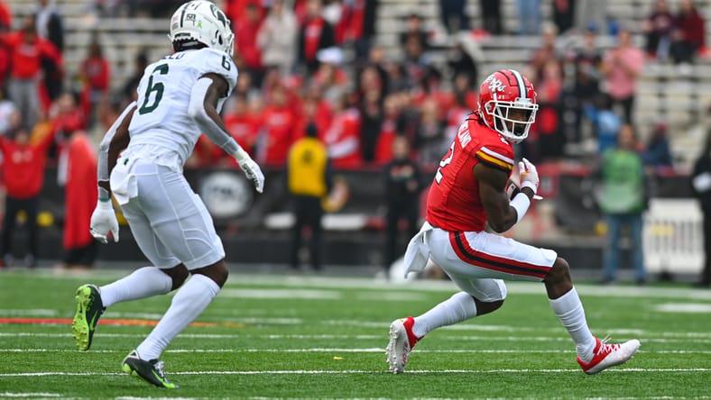 The 5-foot 11-inch playmaker played four seasons at the University of Florida before transferring to Maryland in 2022. All told, he recorded 112 receptions for 1,742 yards and 11 touchdowns in 44 games at the two schools. Copeland also ran a 4.42 second 40-time at the 2023 NFL Combine. He’s got wheels.