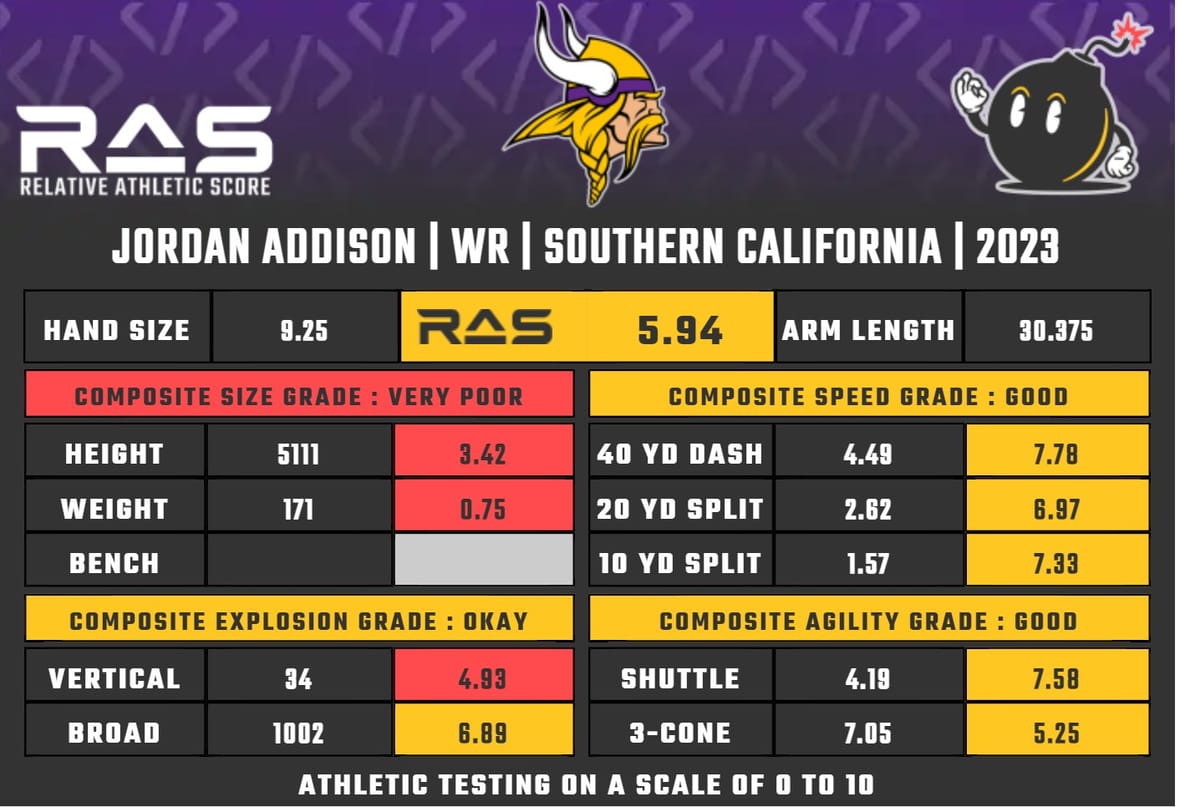 If Addison is the real deal, Kevin O’Connell’s offense in his second season has tremendous upside. The lack of a true outside threat other than Jefferson was a problem in the past, and the decision-makers addressed it by bringing in the college star.