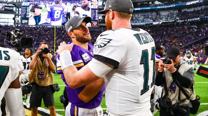 The Minnesota Vikings are set to face off against the Philadelphia Eagles on Sunday at U.S. Bank Stadium. Their quarterback situation is murky at best, and both Carson Wentz and J.J. McCarthy have injury concerns tied to them. There’s only one quarterback Kevin O’Connell can logically start on Sunday, though.
