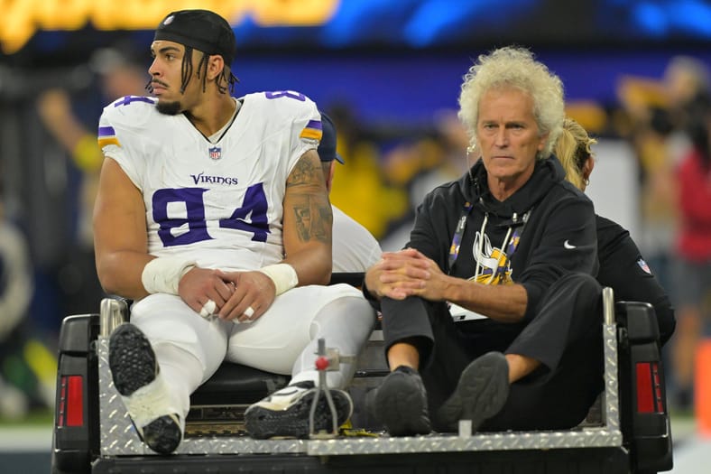 Multiple Vikings players left the field because of injuries during Minnesota’s 37-10 loss to the Los Angeles Chargers on Thursday.